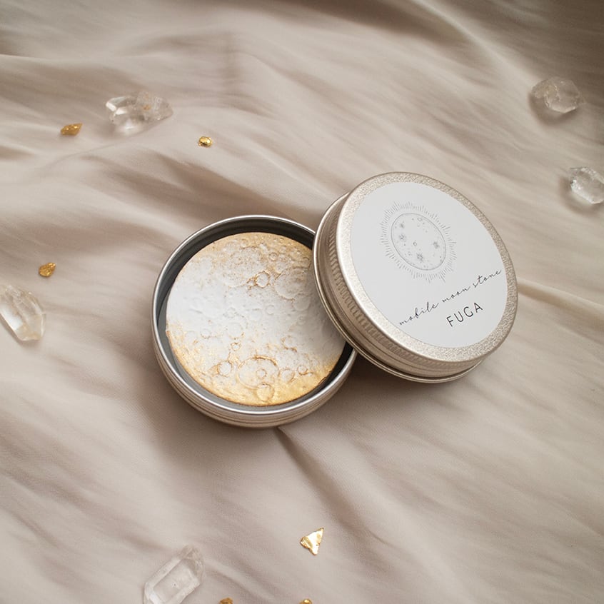 上品なゴールドの缶に閉じ込めた、クレーターがリアルな小さなお月さま。
